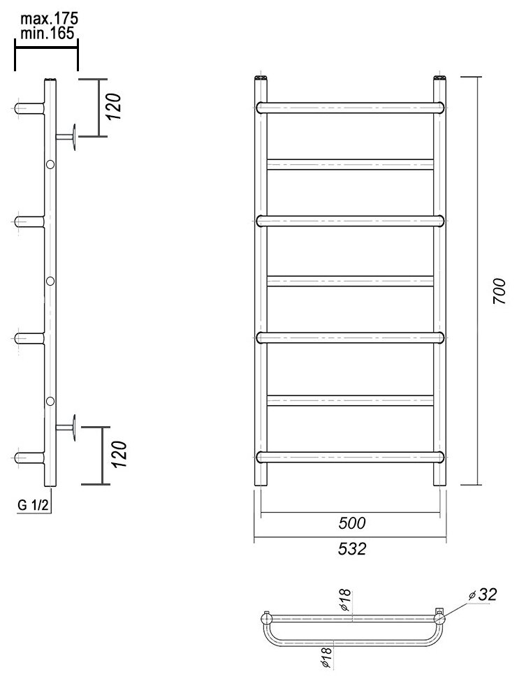 Полотенцесушитель водяной Domoterm Орфей П7 500*700 хром 570 Вт