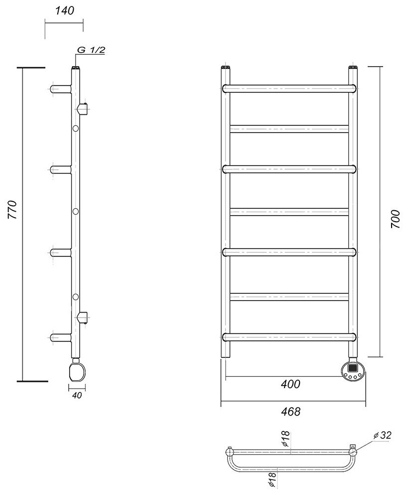 Полотенцесушитель Domoterm Электрический полотенцесушитель Орфей П7 400x700 ER, хром Domoterm