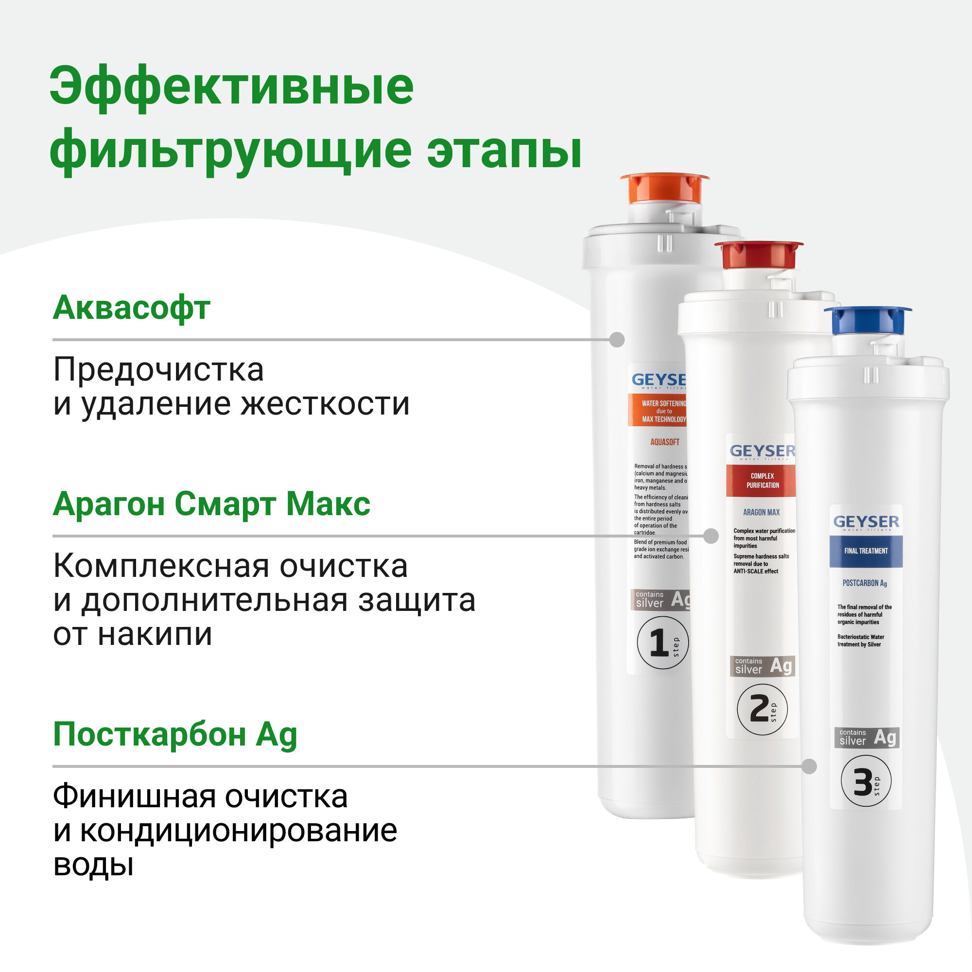 Фильтр для воды Трехступенчатый фильтр для воды Гейзер Смарт Макс