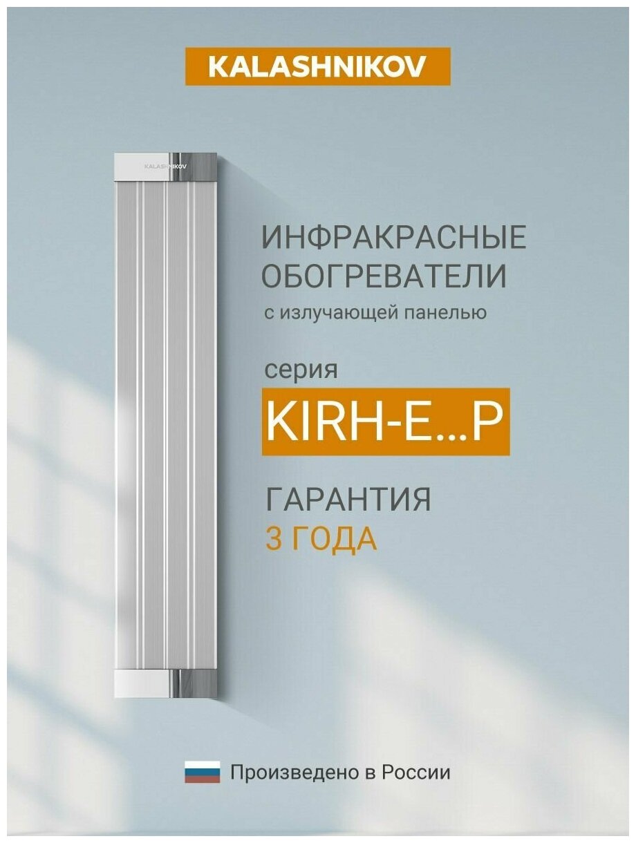 Обогреватель ИК KALASHNIKOV KIRH-E20P-11/2кВт/20м2/панель IP20/h установки 4,5м/220В