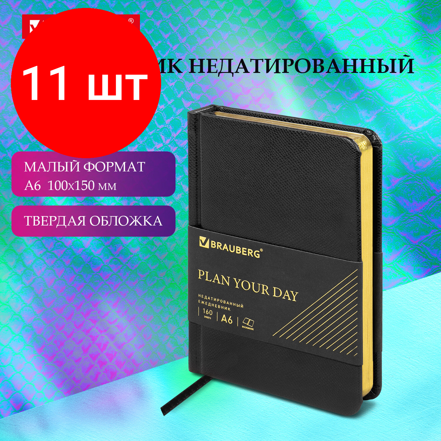 Блокноты Комплект 11 шт, Ежедневник недатированный малый формат А6 (100х150 мм) BRAUBERG "Iguana", кожзам, 160 л., черный, 125104