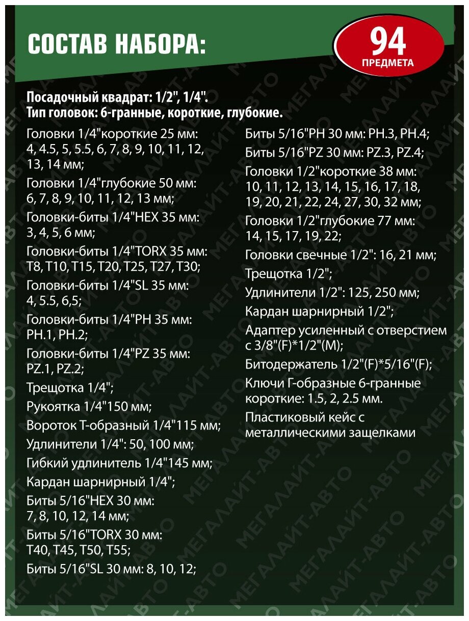 Набор инструментов RockForce 94 предмета (1/4'',1/2'' )