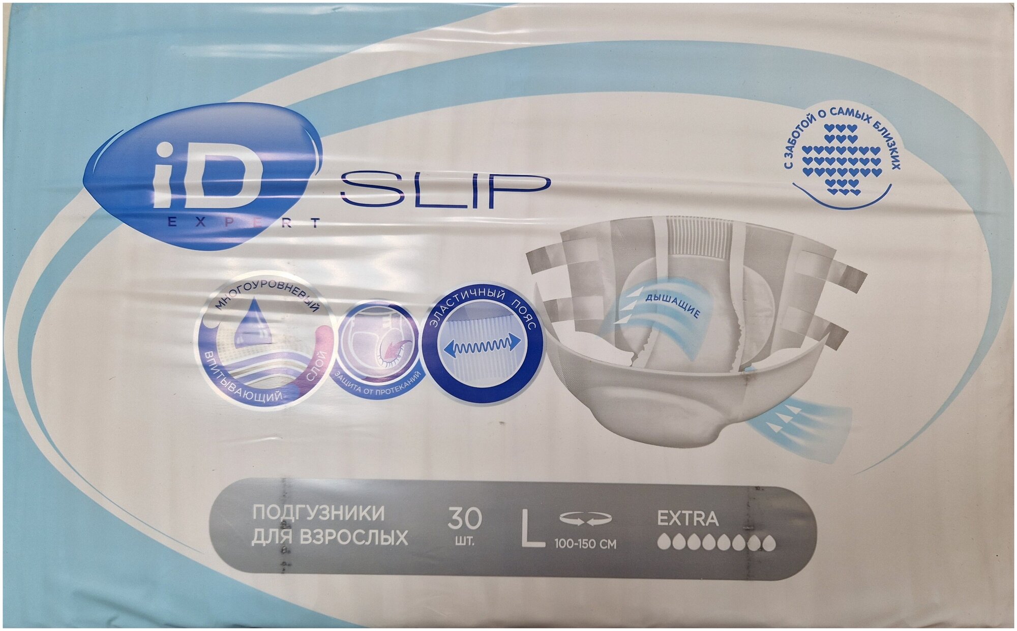 Подгузники для взрослых iD SLIP EXPERT L 30 шт, объем талии 100-150 см