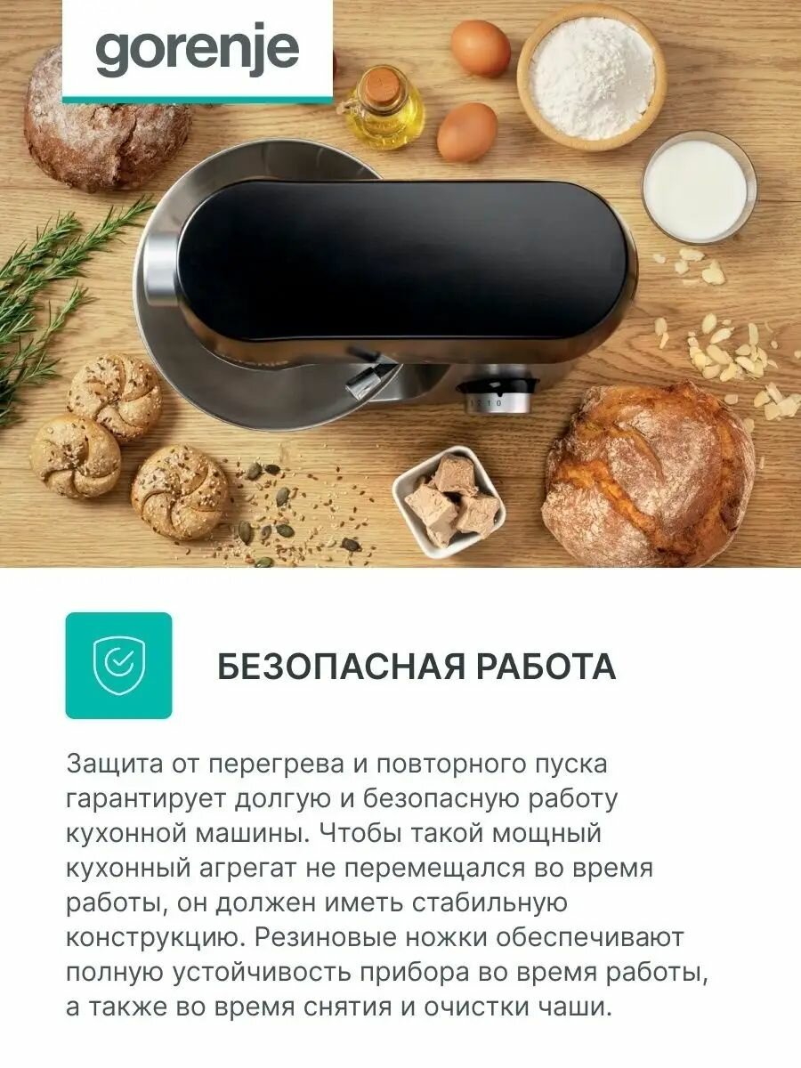 Кухонные комбайны Кухонная машина Gorenje MMC1000XE мощность 1000 Вт., 7 скоростей, объем 5 л., 3 насадки, черная