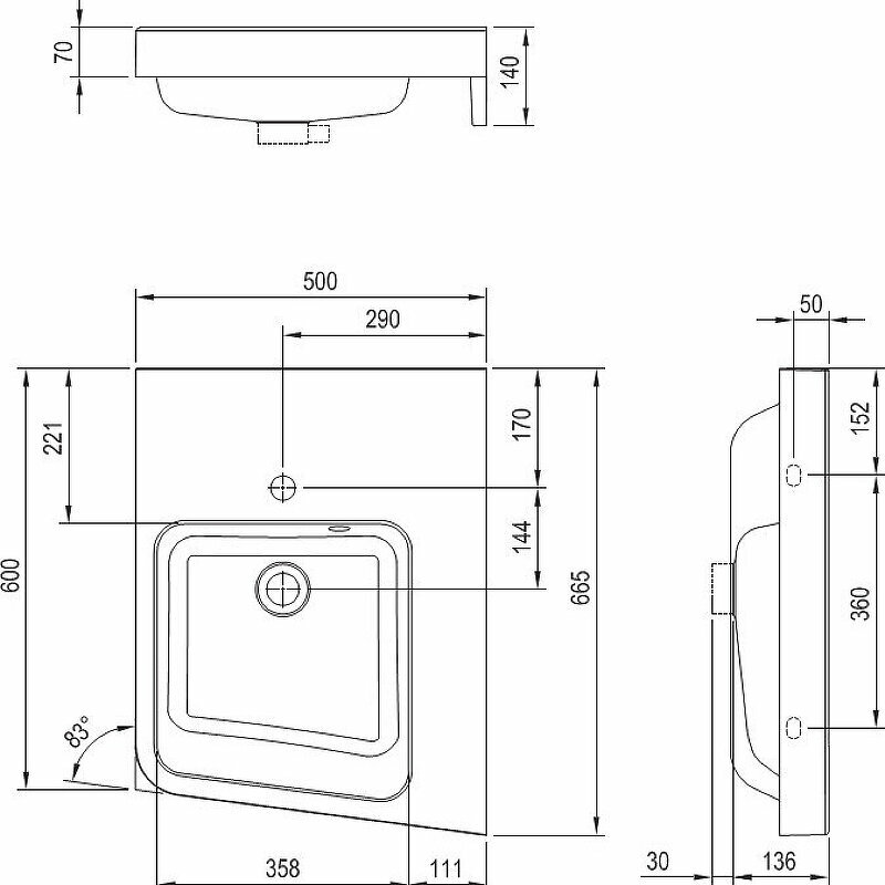 Лучшие цены. Раковина Ravak Be Happy II 50 R XJAP1100001 угловая правая. Характеристики: - Цвет: белый. - Материал: литьевой мрамор (композитная смесь доломита и смолы). - Размеры (ШхГхВ): 50х60х14 см. - Диаметр слива: 3,5 см. - Форма: прямоугольная. - Ориентация: правая. - Отверстия под смеситель: на 1 отверстие. - Расположение смесителя: по центру. - Монтаж: подвесной. - Встроенный слив-перелив. В комплекте поставки: раковина, комплект креплений, колпачок перелива. Магазины в вашем городе.