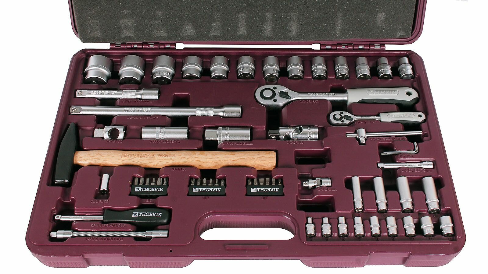 THORVIK UTS0077 12 Набор инструмента универсальный 1 4", 1 2"DR с головками торцевыми 12-гранными, 77 предметов