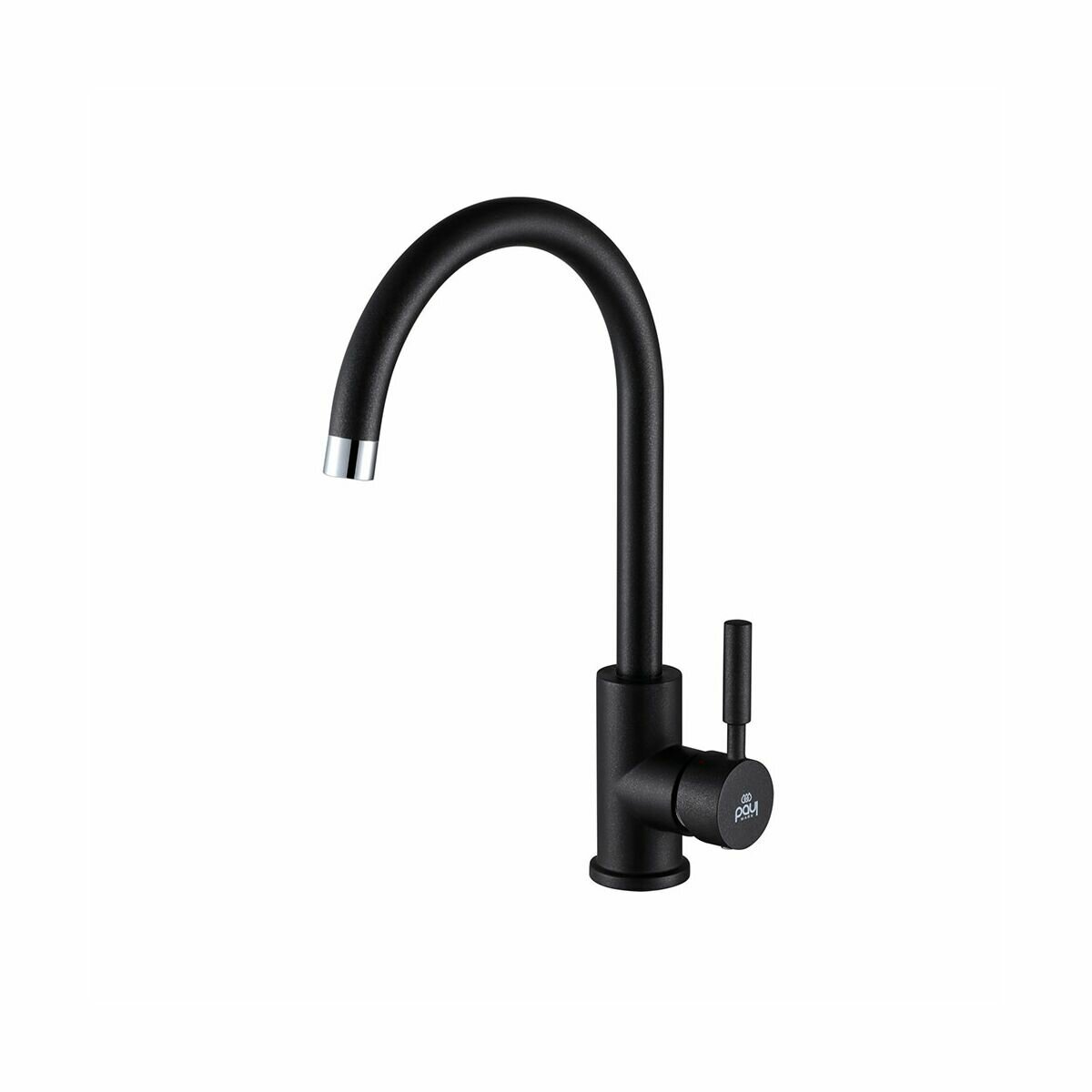 Смеситель для кухни Paulmark HOLSTEIN, высокий поворотный излив, однорычажный, латунь, на мойку / столешницу, черный, Ho212063-308
