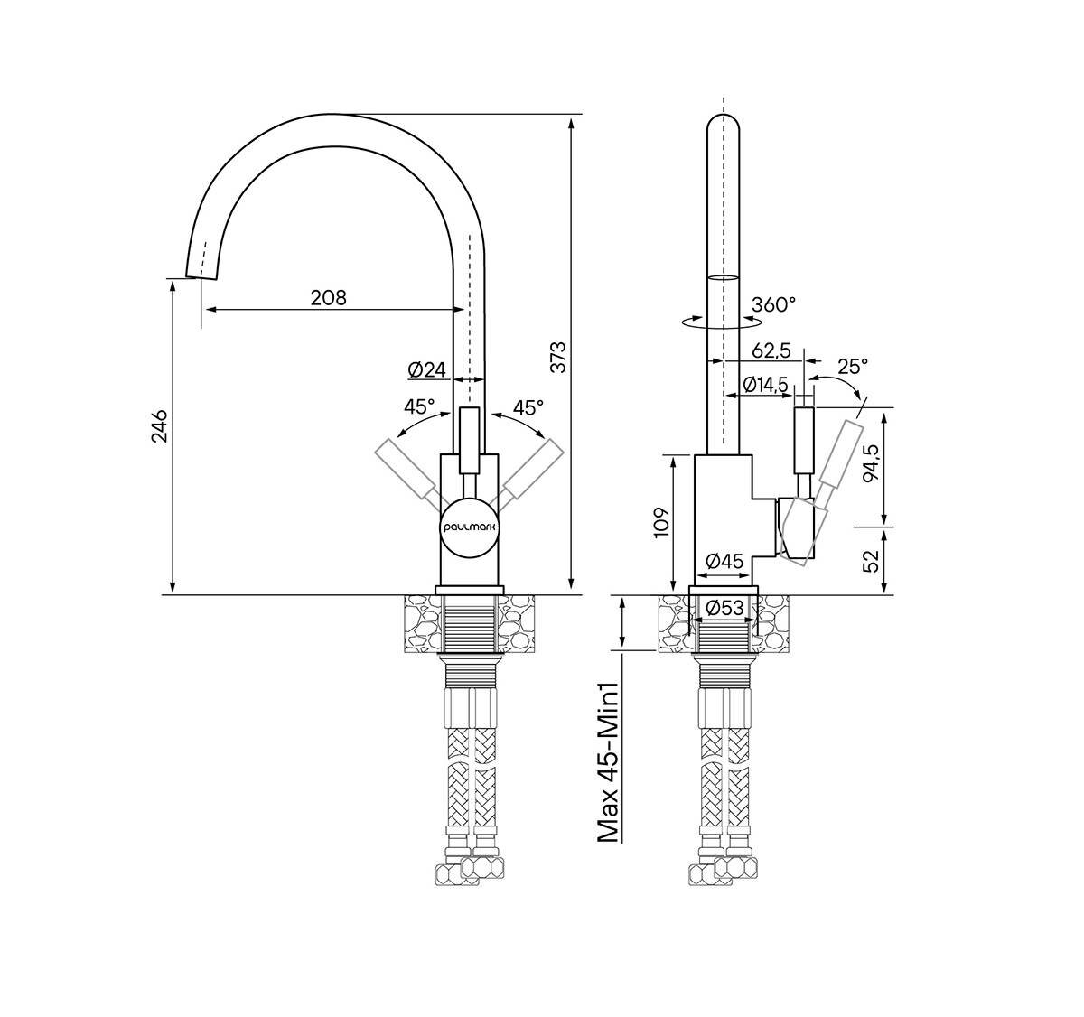 Смеситель Paulmark HOLSTEIN Ho212063-308, черный