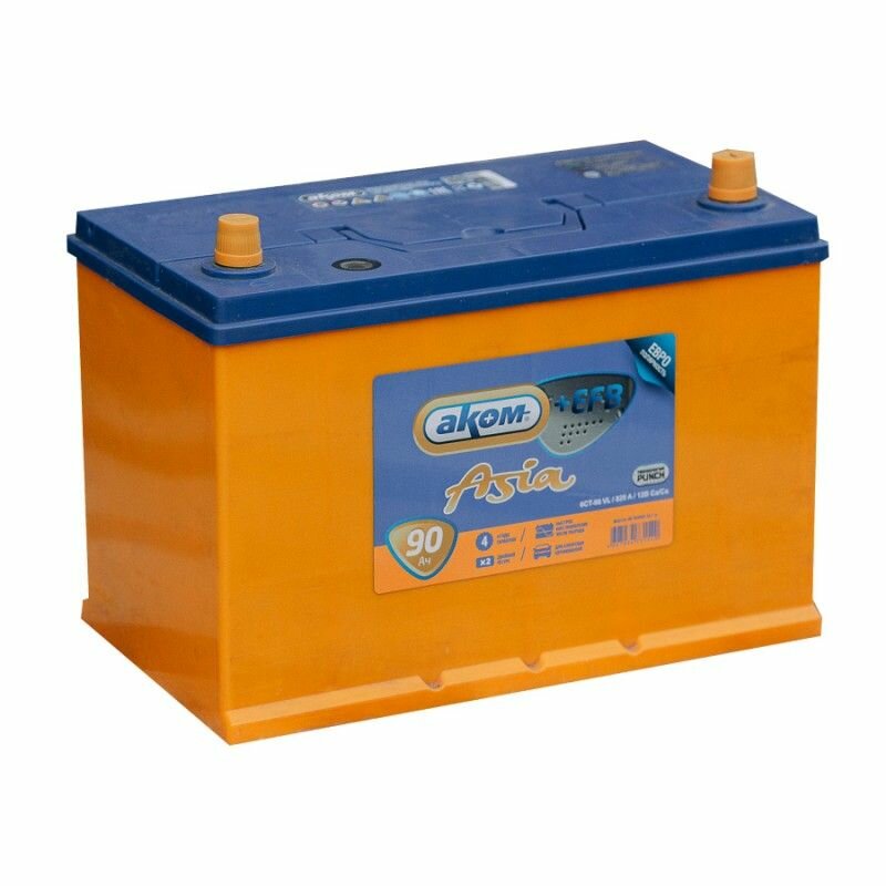 Автоаккумуляторы Аккумулятор автомобильный АКОМ ASIA + EFB 90Ач R+ EN850A 306x173x225 B01 обратной полярности