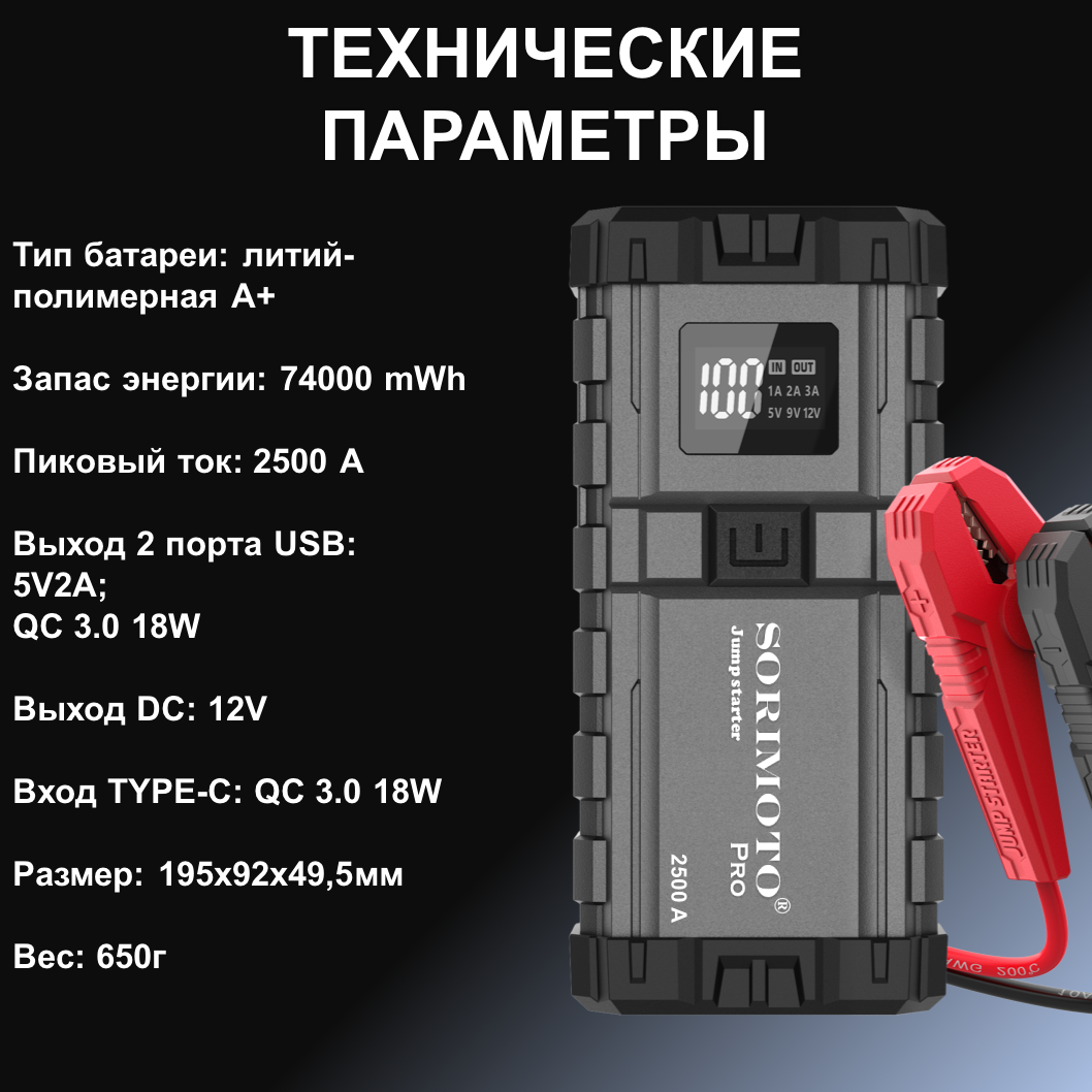 Пуско-зарядное устройство для автомобиля SORIMOTO X5 9 000 ₽ Подробнее