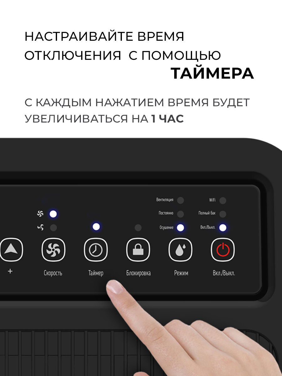 | Функции | гигростат / регулировка скорости вентилятора / таймер отключения / до 24 часов / / режим авторазморозки / сушка одежды (турбо режим) / воздушный фильтр / индикатор заполненности бака / отключение при заполненном резервуаре / дренаж |