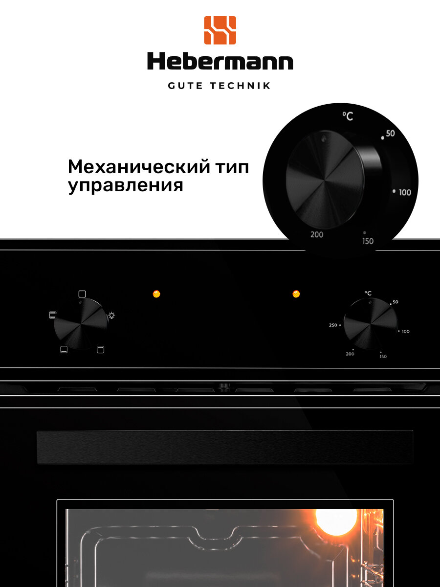 Духовые шкафы Духовой шкаф встраиваемый HBBO 4504.1 B, черный, верхний и нижний нагрев, 1 решетка и 1 глубокий противень, Объем духовки 58 л., двойное стекло у дверцы, 4 режима работы, размер шкафа 595х450х580 мм, отделка фасада-стекло.