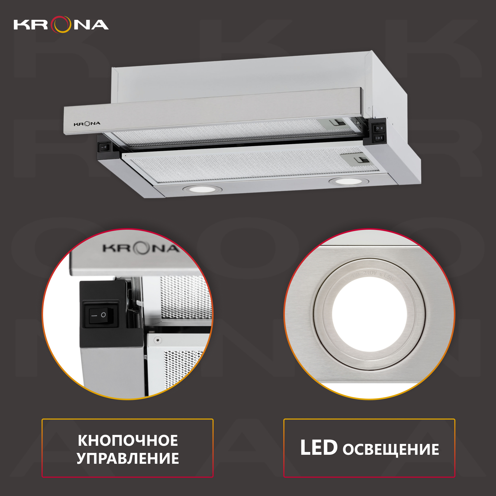 Вытяжки Вытяжка встраиваемая Krona Kamilla T 500 X