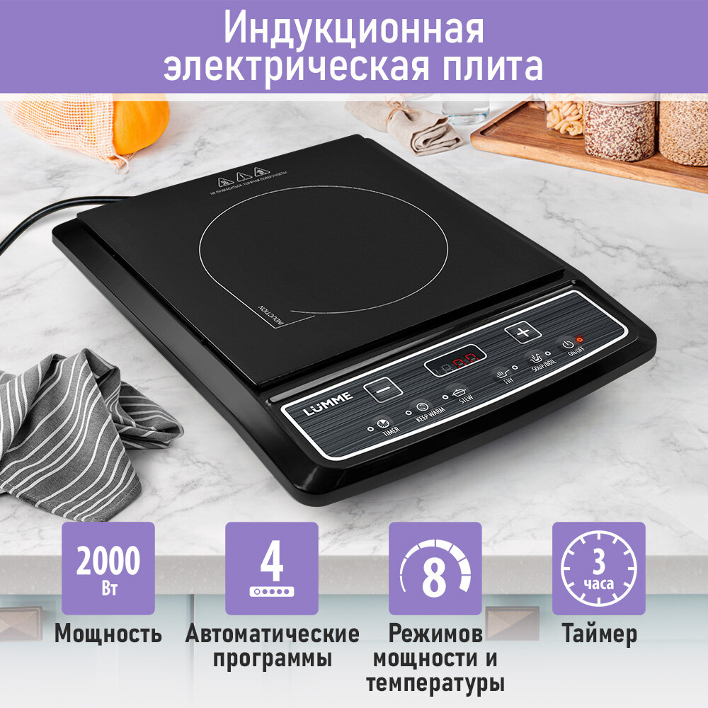 Плиты Электрическая индукционная безимпульсная плитка LUMME LU-HP3647A черный