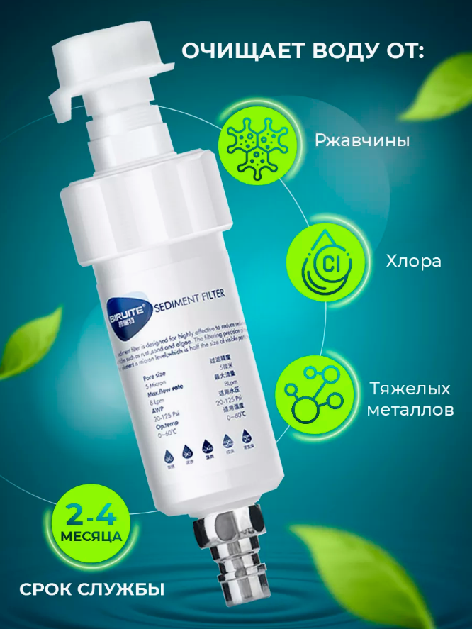 | Виды фильтрации | механические примеси / активный хлор / ионы тяжелых металлов / пестициды |