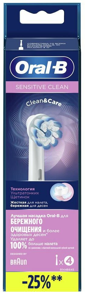 Насадки для зубных щеток Насадки для зубной щетки Oral-B Pro Sensitive Clean, белые, 4 шт.