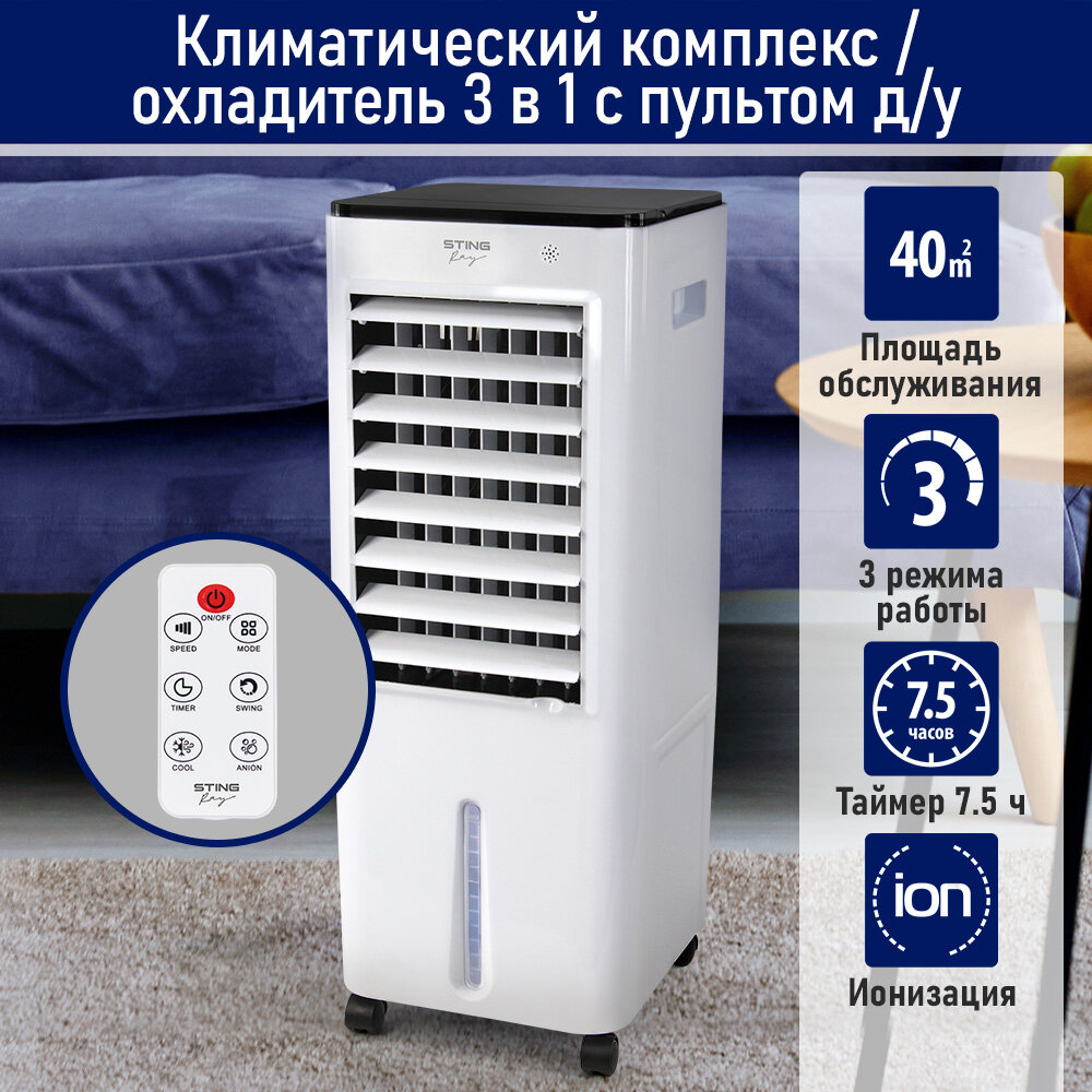 Кондиционеры STINGRAY ST-CO4604A белый напольный охладитель,кондиционер,вентилятор,увлажнитель воздуха с ионизаци