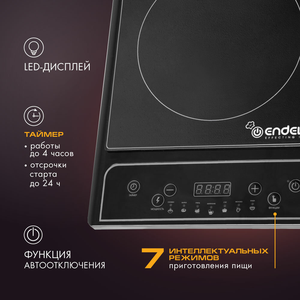 Плиты Индукционная плита настольная электрическая Endever Skyline IP-22 / 2000 Вт / до 10 кг / до 240 градусов / 7 автоматических программ