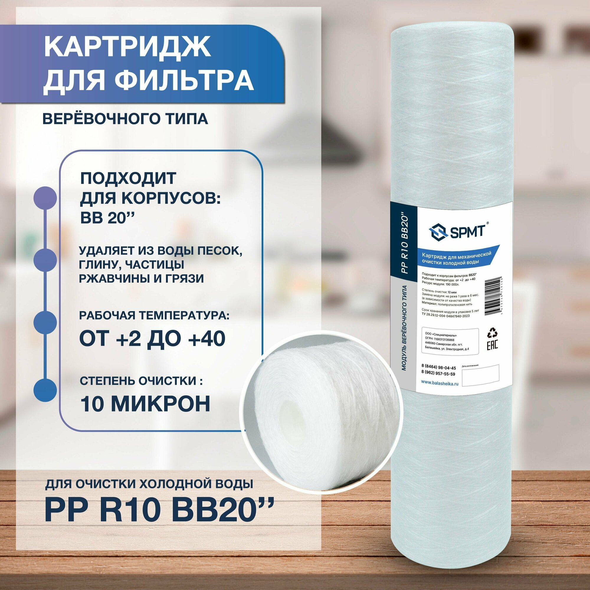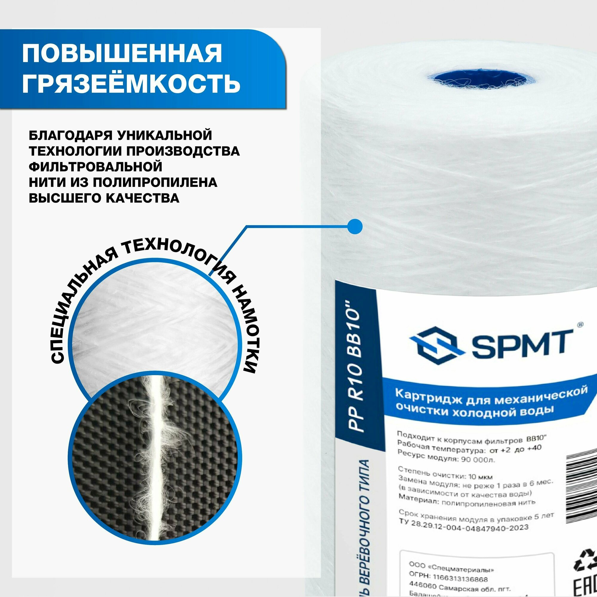 Картриджи для воды Картридж для фильтра механической очистки воды, верёвочный BB20 (508ммх112мм), поры 10мкм, 1шт