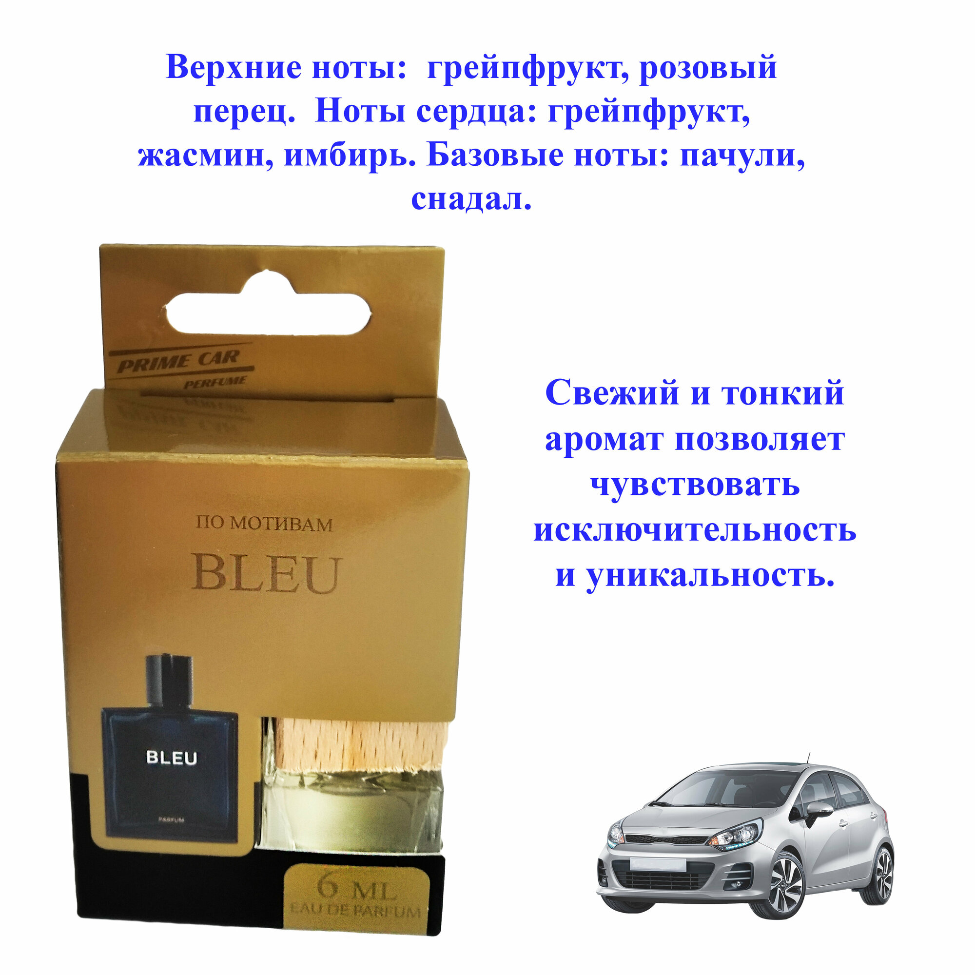 Ароматизатор для автомобиля с деревянной крышкой и шнурком"PRIME CAR - (BLEU)" (6мл) / мужской автопарфюм 334 ₽ Подробнее