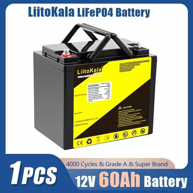Автоаккумуляторы Аккумулятор, внешний аккумулятор Liitokala литий-железо-фосфатный Lifepo4 60Ah 12v
