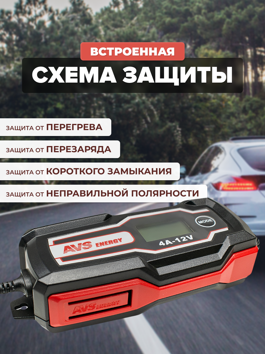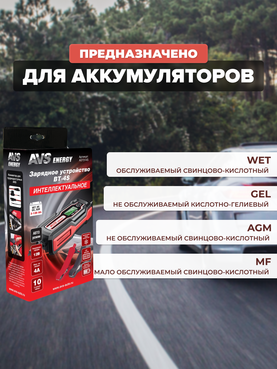Пуско-зарядные устройства AVS BT-4S для автомобильного аккумулятора (4A, 51W) 12V