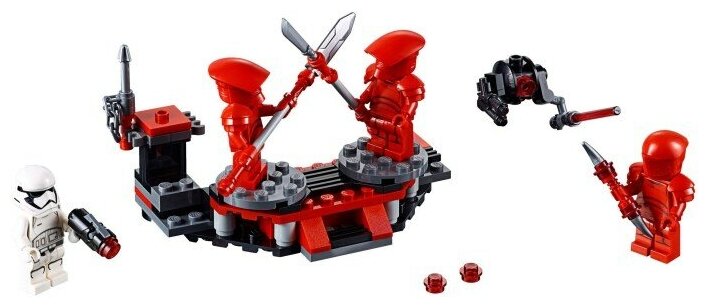 Лучшие цены. Предоставьте возможность поклонникам конструкторов LEGO воссоздать увлекательные сцены тренировок с набором «Боевой набор элитной преторианской гвардии». Этот стартовый набор включает в себя тренировочную платформу с вращающимися подставками для двух мини-фигурок, с помощью которых ты сможешь устраивать яростные тренировочные дуэли. Здесь ты также найдёшь стойку с открепляемым оружием и дроида для ещё более увлекательных тренировок, а также фигурки трёх Стражей элитной преторианской гвардии и Штурмовика. Магазины в вашем городе.