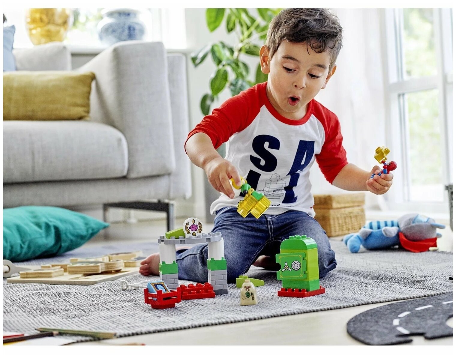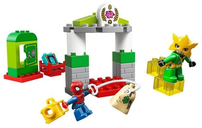 Лучшие цены. Маленькие супергерои будут часами играть с конструктором «Человек-паук против Электро» LEGO DUPLO, придумывая новые приключения своих любимых героев. Помогите Человеку-пауку сплести паутину, помешать Электро ограбить банк и забрать видеозапись, доказывающую его преступление. Общайтесь и конструируйте вместе с ребёнком, помогая ему развивать навыки мелкой моторики в процессе сборки. В набор входят 2 фигурки LEGO DUPLO: Человек-паук и Электро. Магазины в вашем городе.