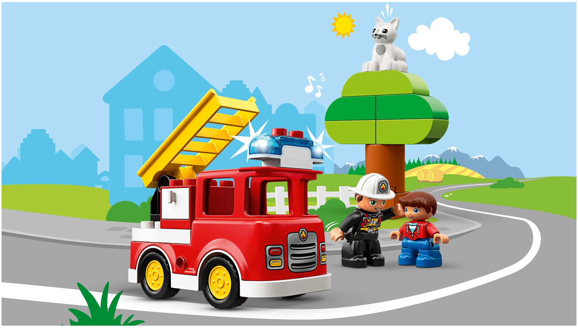 Лучшие цены. Разыгрывайте сценки из реальной жизни в Городке LEGO® DUPLO® — знакомого детям всего мира, где живут современные фигурки LEGO® DUPLO®. Вместе по своим маленьким пожарным спешите на помощь жителям городка в Пожарной машине (10901) с синей мигалкой и пожарной сиреной! Простая в сборке модель пожарной машины, оснащенная открывающимся отсеком и лестницей. Малыши с радостью помогут пожарному снять котенка с дерева, которое они только что собрали! В набор входят две фигурки DUPLO и фигурка кошки. Магазины в вашем городе.