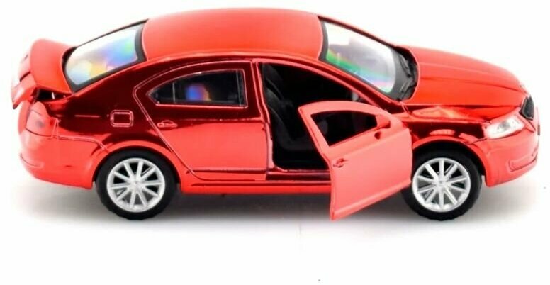 Конструкторы Машина металл. Skoda Octavia, 12см, (открыв. двери, хром красный ) инерц. в коробке