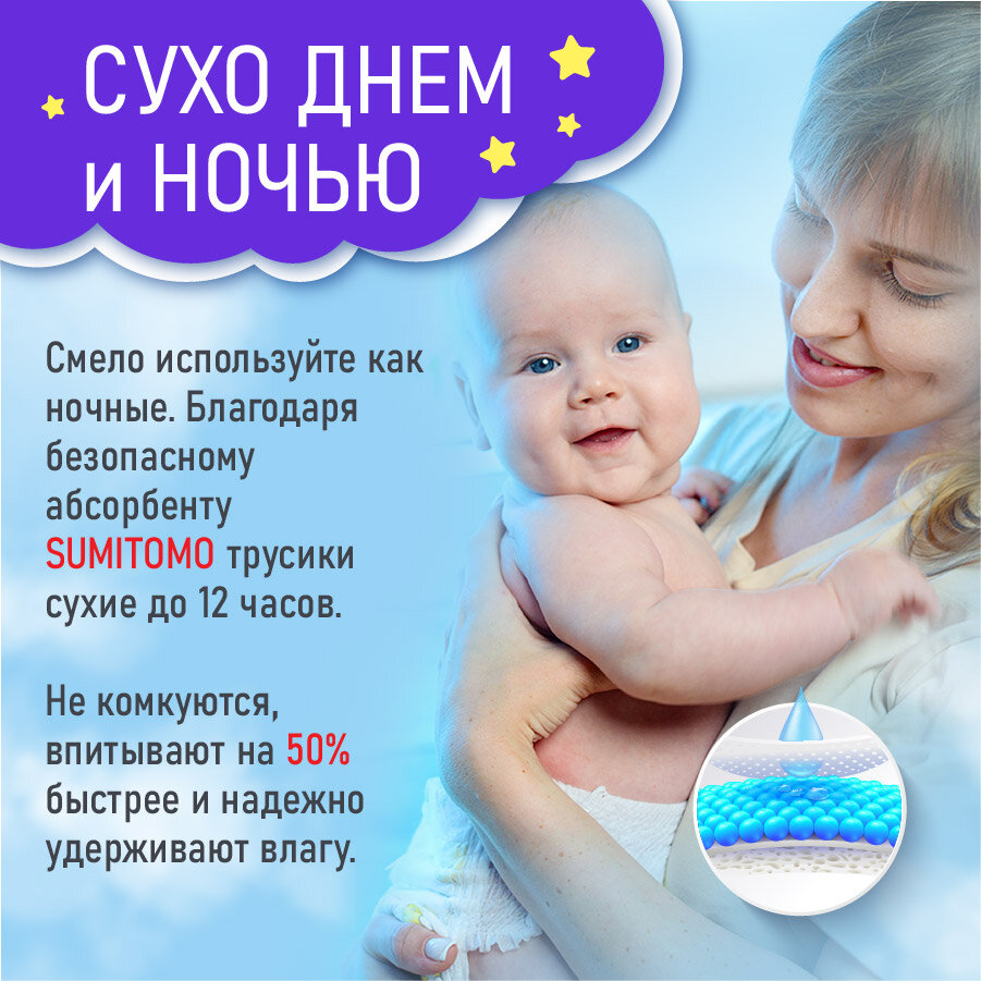 Подгузники трусики ночные для новорожденных 5 размер XL от 12-17 кг 68 шт 2 319 ₽ Подробнее