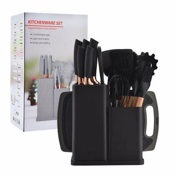 Наборы ножей Поварешки кухонные набор Kitchenware Set 19 предметов силикон бамбук черный