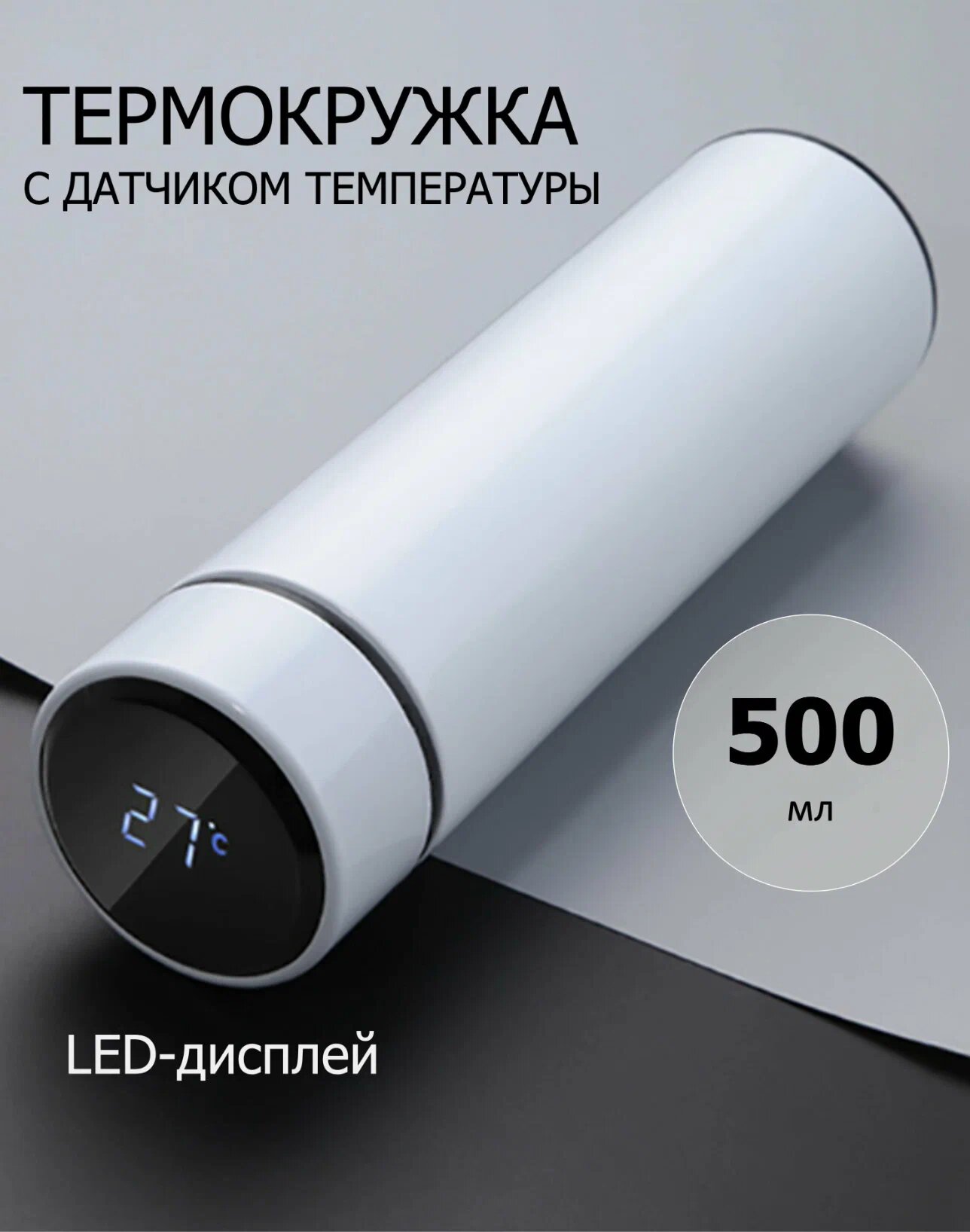 Термос с дисплеем / Термос с датчиком (индикатором) температуры / Термобутылка / Автокружка, 500 мл, белый 415 ₽ Подробнее