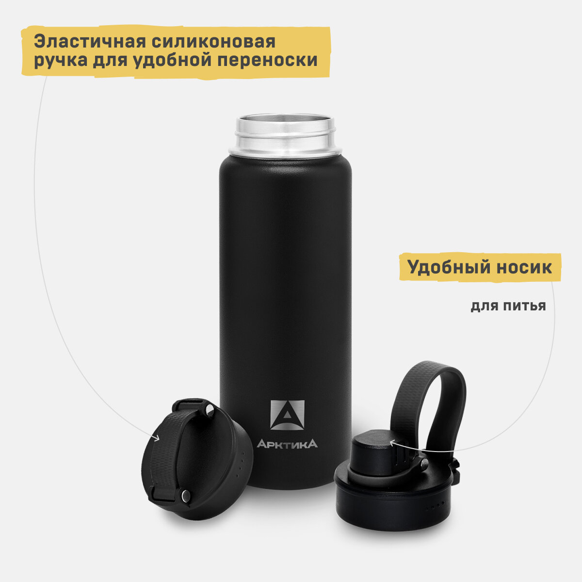 Термобутылка для воды Арктика 708-700 желтая матовая 0,7 литров термос для напитков спортивный с двумя крышками 1 620 ₽ Подробнее