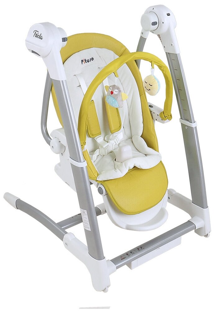 Лучшие цены. Pituso Triola – удобный стульчик 3 в 1, который можно использовать в качестве электрокачели в период с 6 месяцев до года. Сам же стульчик для кормления прослужит до достижения малышом возраста в 3 года. Модель отличается компактной рамой складного типа и имеет чехол из эко-кожи, который очень легко мыть. Магазины в вашем городе.