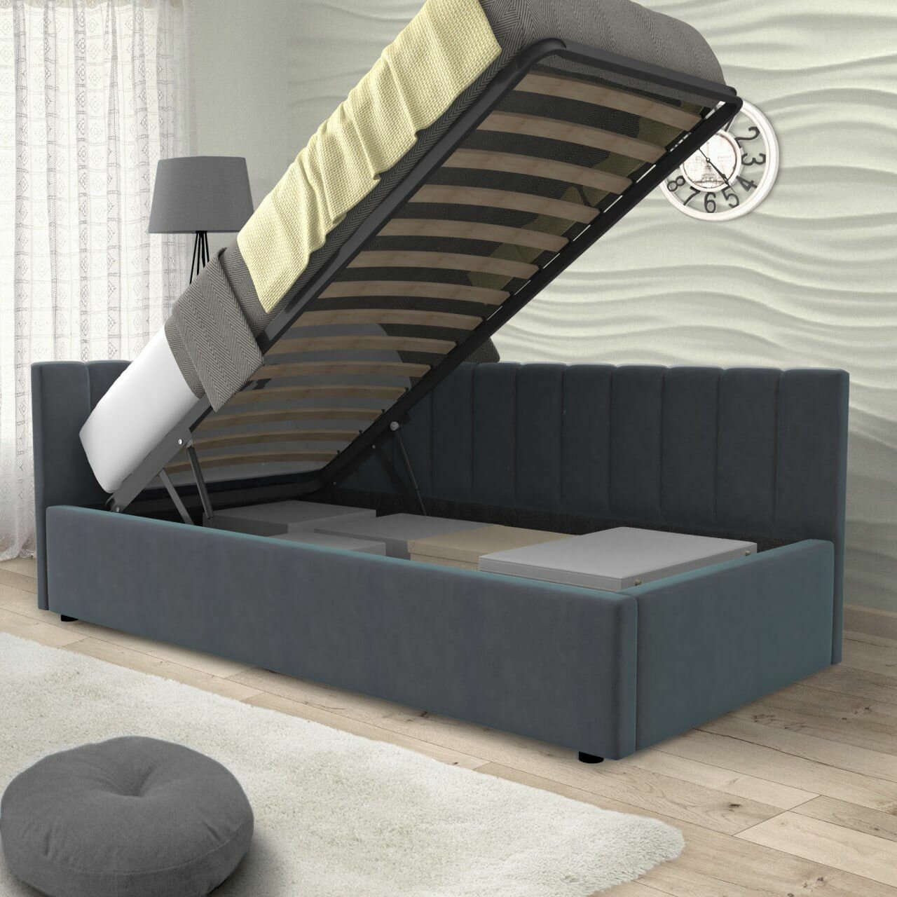 Односпальная угловая кровать с матрасом, Тахта 90х200 с мягкой спинкой "MERLIN-GREY" 34 990 ₽ Подробнее