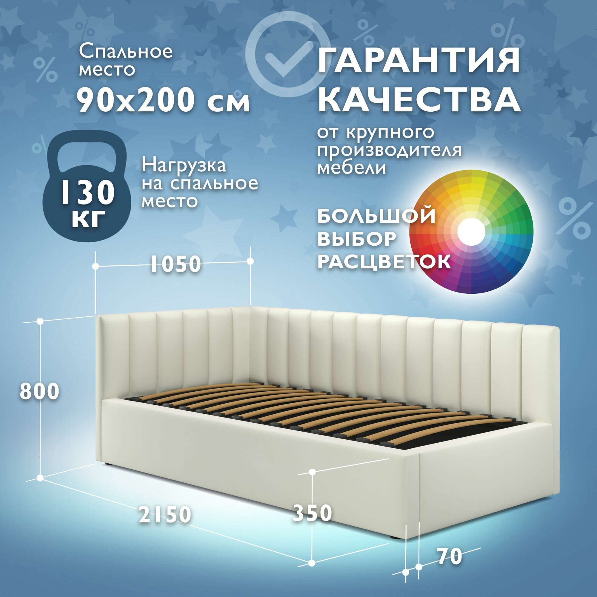 Кровать 90х190 односпальная с матрасом, угловая тахта с мягкой спинкой "MERLIN-AQUA" детская 29 990 ₽ Подробнее