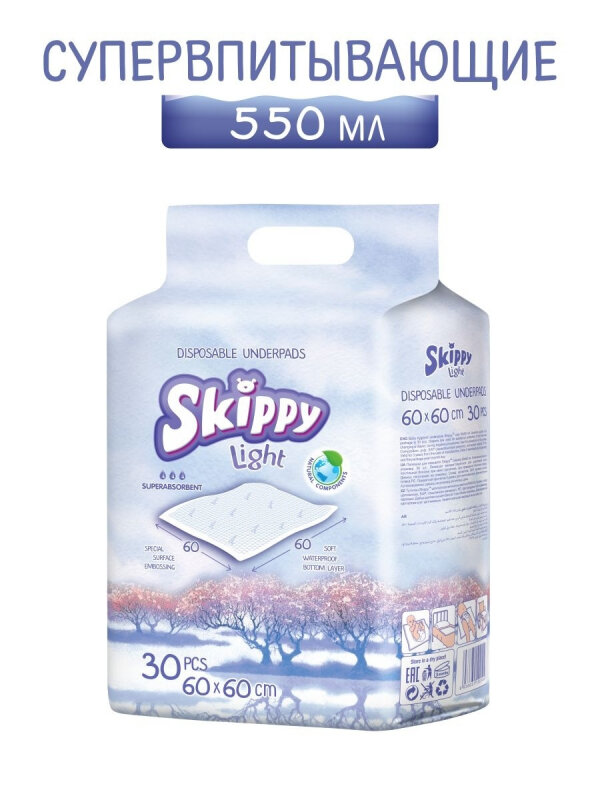 Подгузники Гигиенические пеленки детские Skippy Light, р-р 60x60 (30шт.)