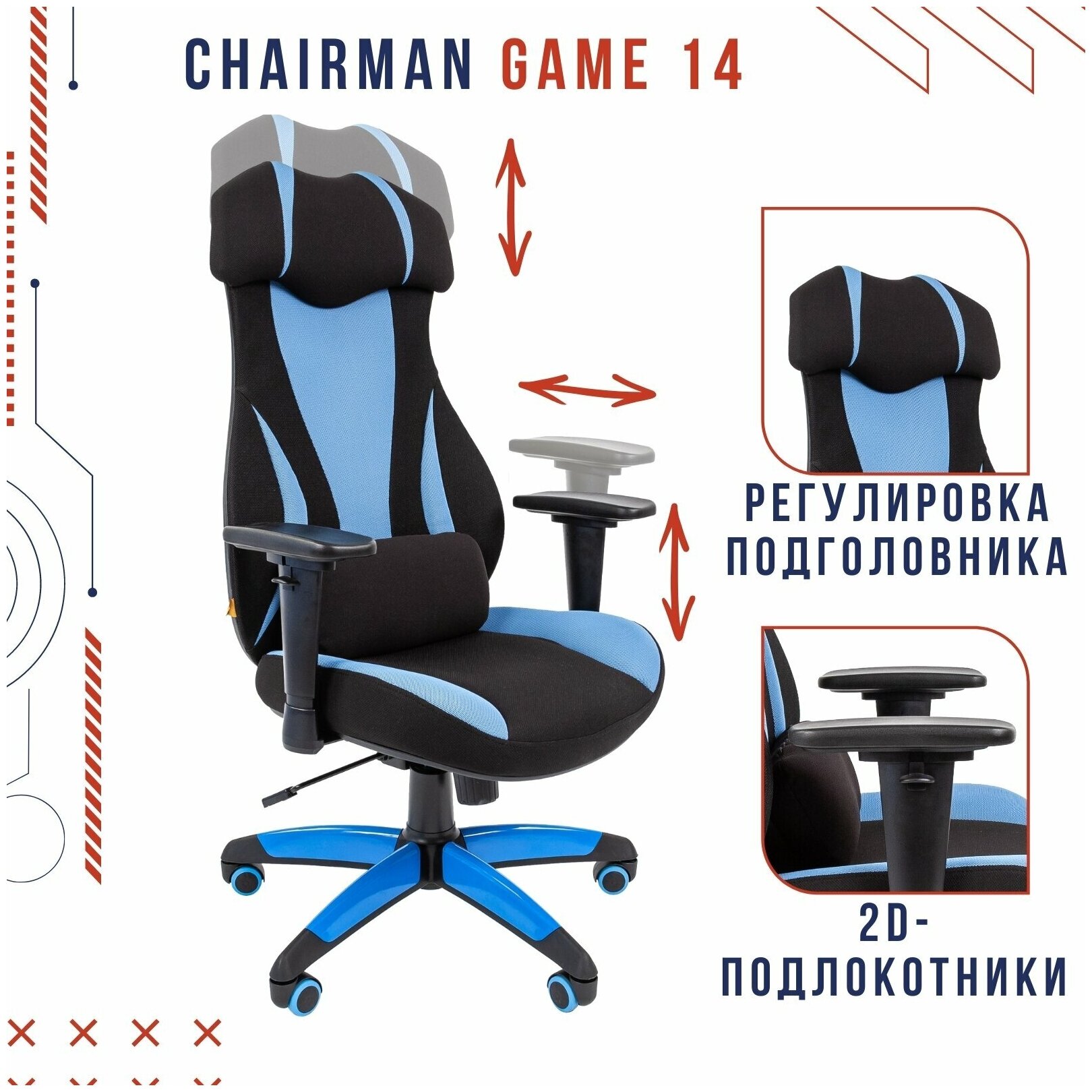Компьютерное кресло Офисное кресло Chairman game 14 ткань черный/голубой
