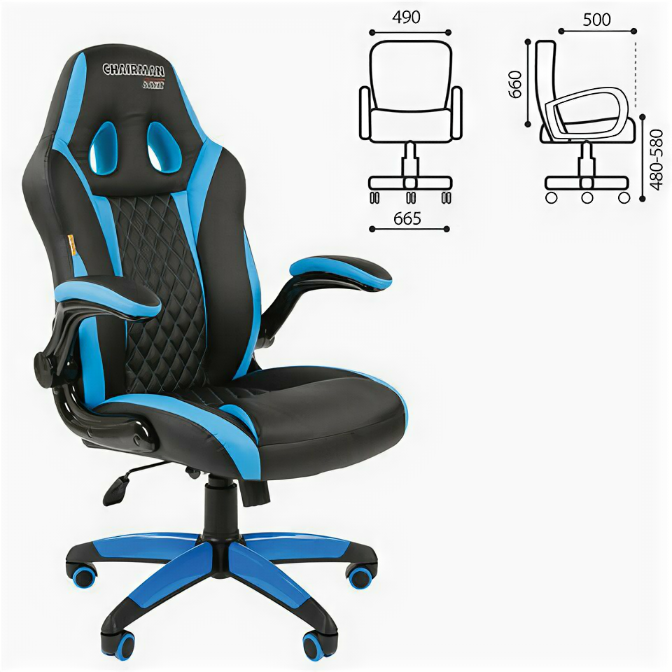 Кресло геймерское Chairman game 15 Россия экопремиум черный/голубой н.п.