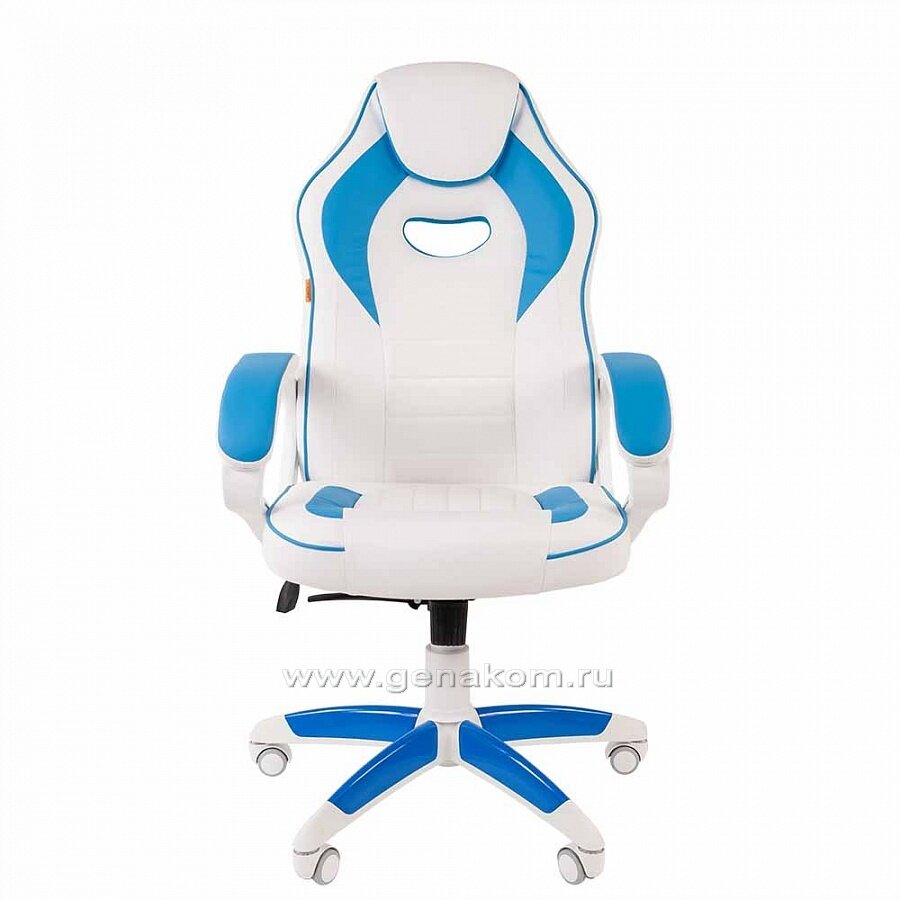 Персональные компьютеры Компьютерное кресло Chairman GAME 16 игровое, обивка: искусственная кожа, цвет: белый/голубой