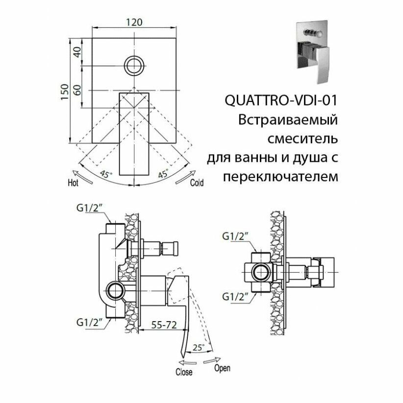 Смеситель для ванны с душем Cezares Quattro C VDI-01 С внутренней частью 7 810 ₽ Подробнее