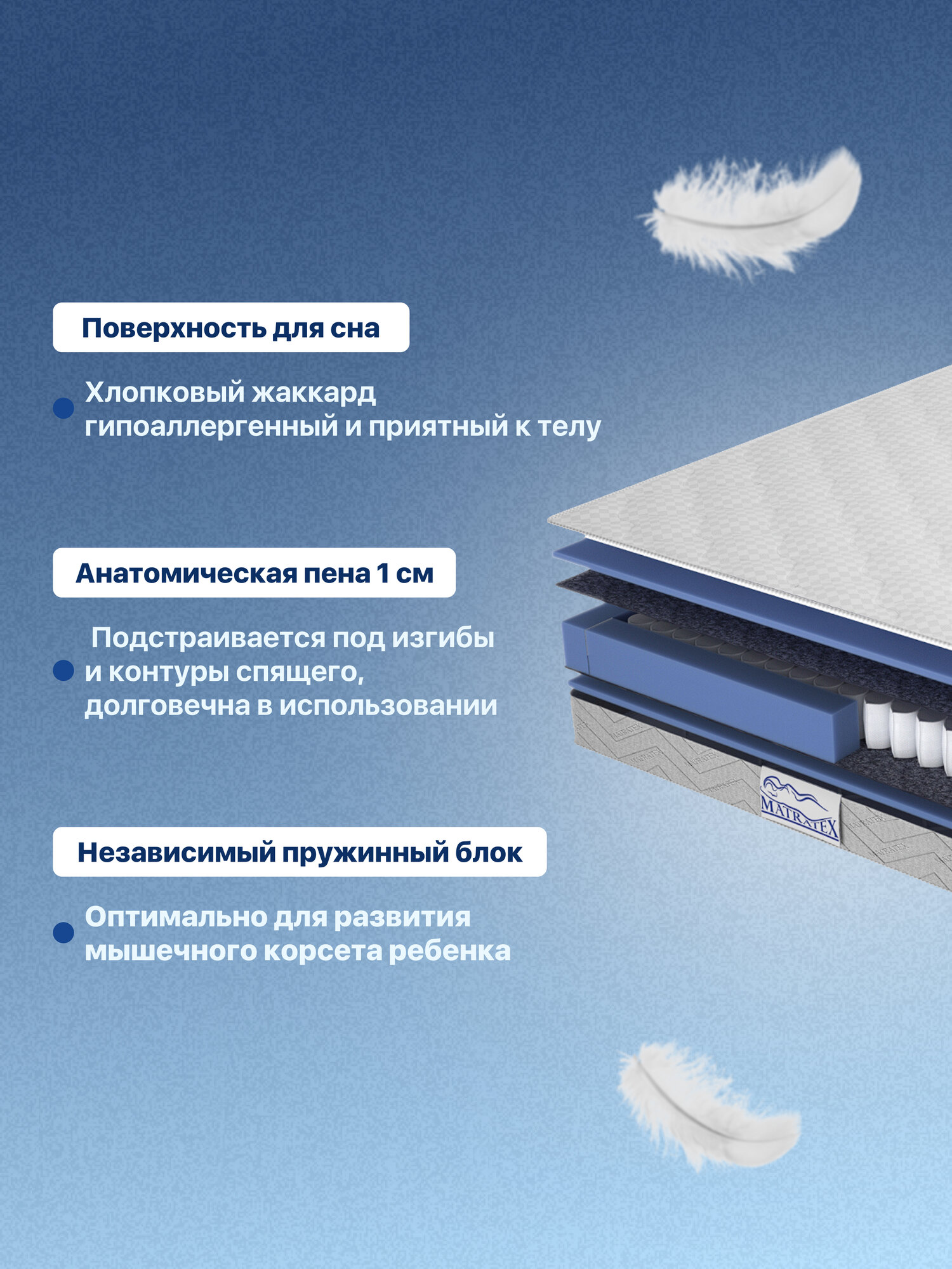 Матрас детский 70х190 юниор ортопед MATRATEX, независимые пружины, средняя жесткость, матрас в кроватку, двусторонний 5 451 ₽ Подробнее