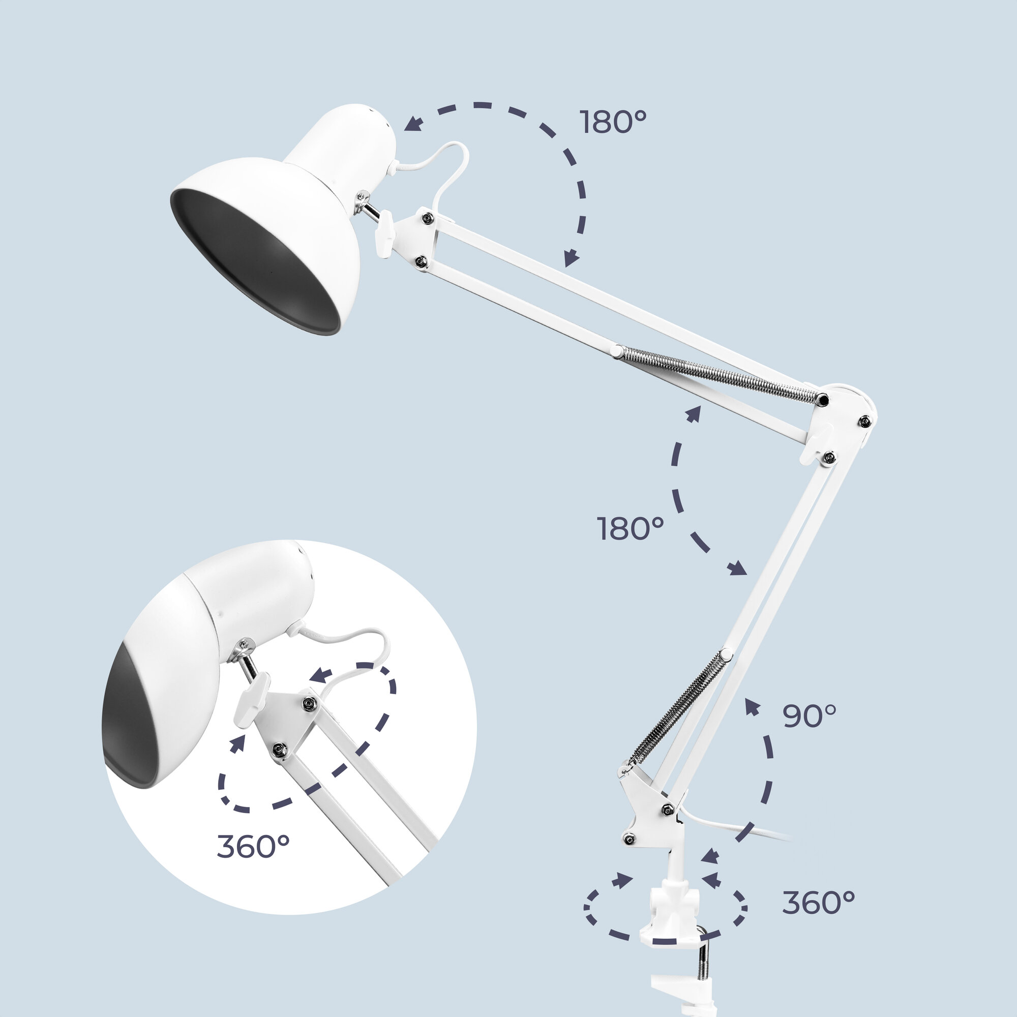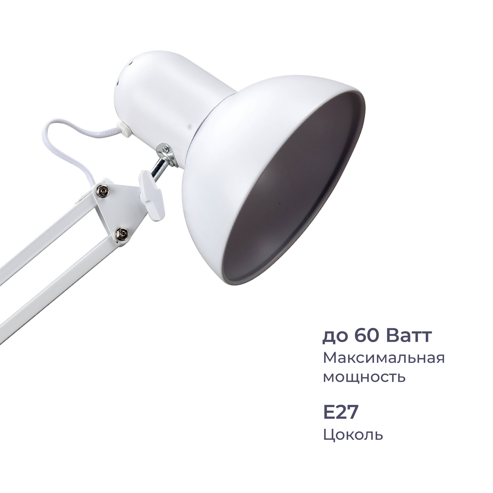 Лампа настольная Homsly с цоколем Е27, крепление струбцина, цвет корпуса матовый белый, TTL_001