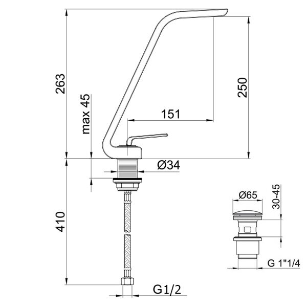 Смеситель для раковины с донным клапаном WEBERT WOLO WO830402015 хром