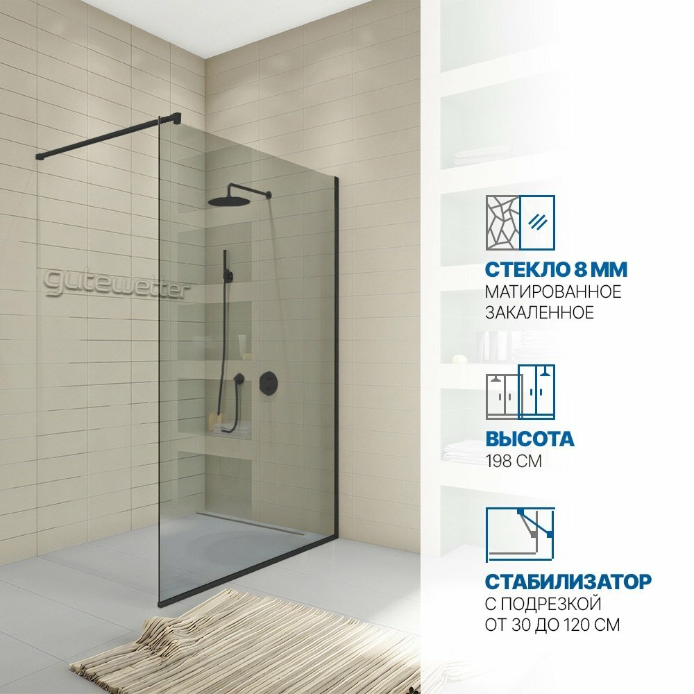 Душевая перегородка GWMPWA8STB 75x198 см, цвет фурнитуры черный матовый, цвет стекла бесцветный, стекло закаленное 8 мм 16 170 ₽ Подробнее