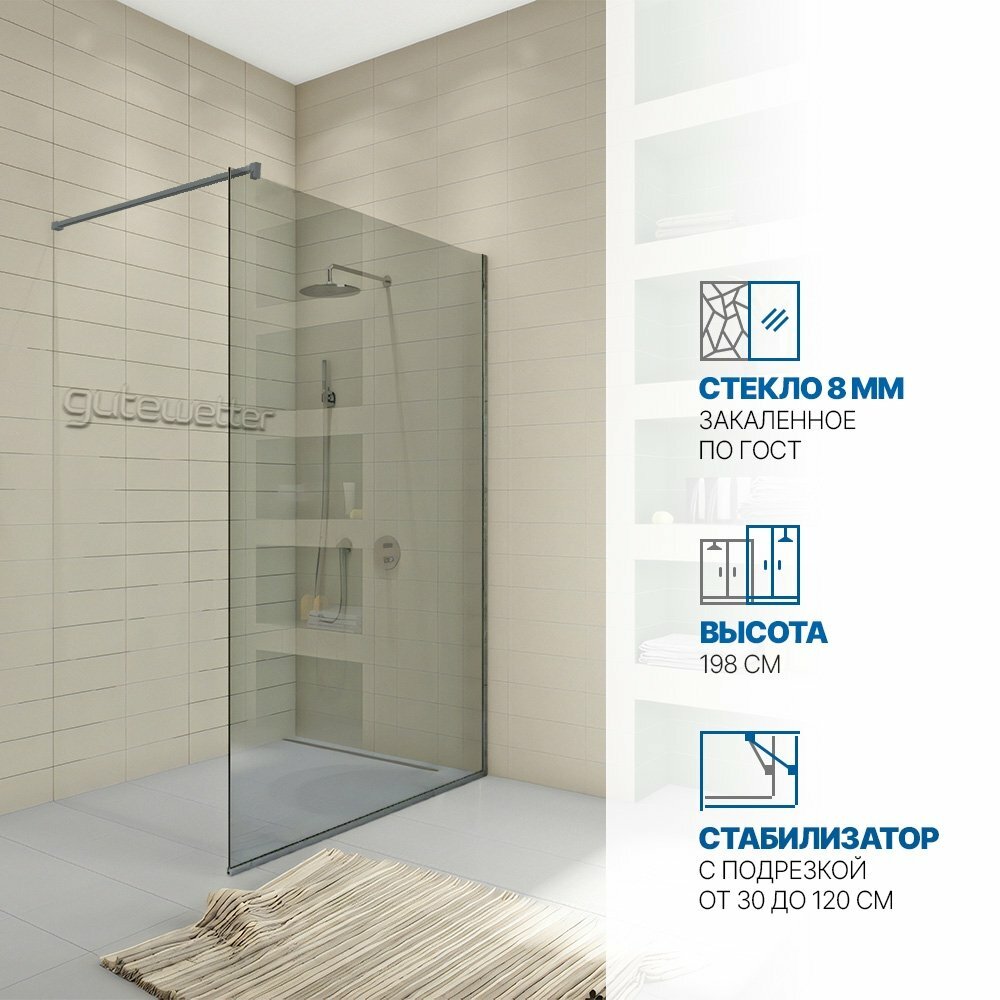 Душевая перегородка GWMPWA8STB 80x198 см, цвет фурнитуры хром блестящий, цвет стекла бесцветный, стекло закаленное 8 мм 15 180 ₽ Подробнее