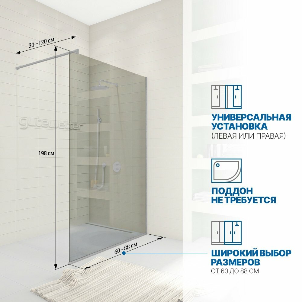 Душевая перегородка GWMPWA8STB 80x198 см, цвет фурнитуры хром блестящий, цвет стекла бесцветный, стекло закаленное 8 мм 15 180 ₽ Подробнее