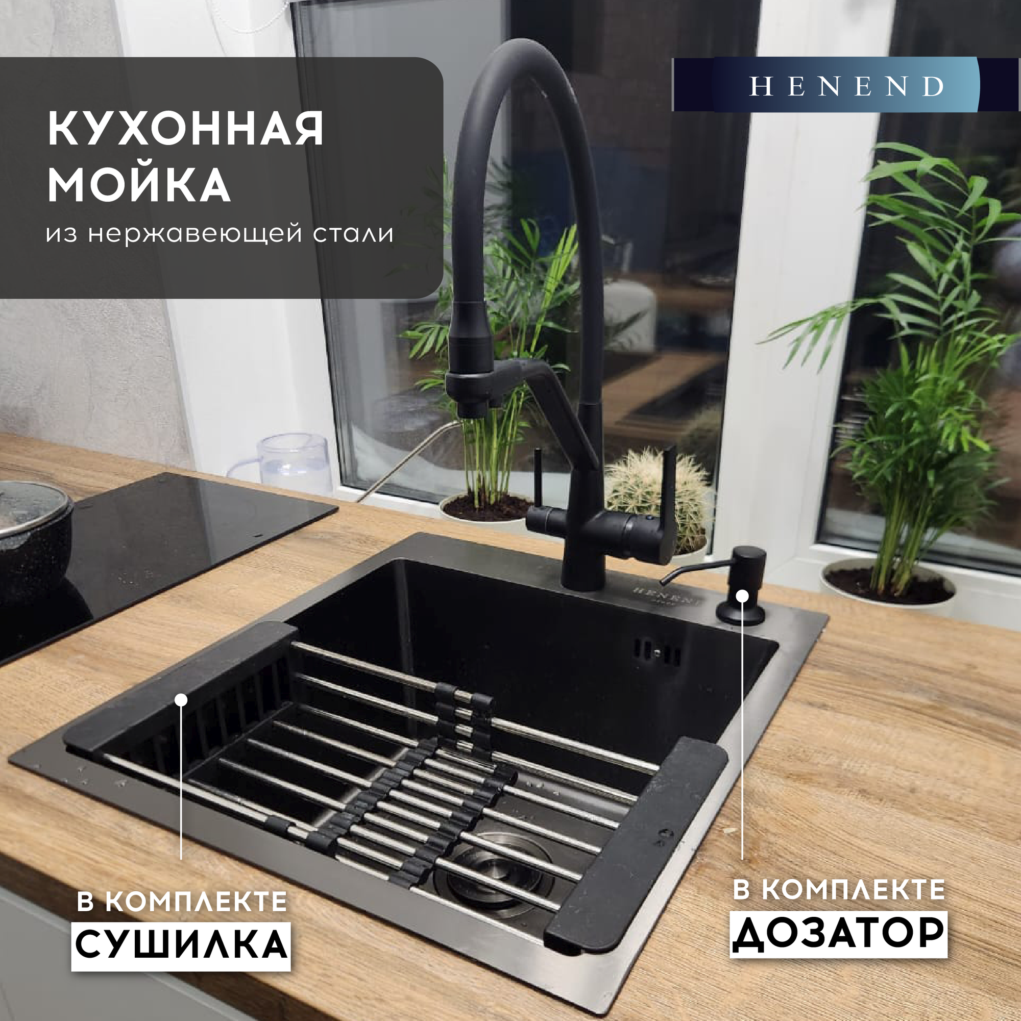 Кухонные мойки Мойка для кухни Henend 45x50B с дозатором и сушилкой