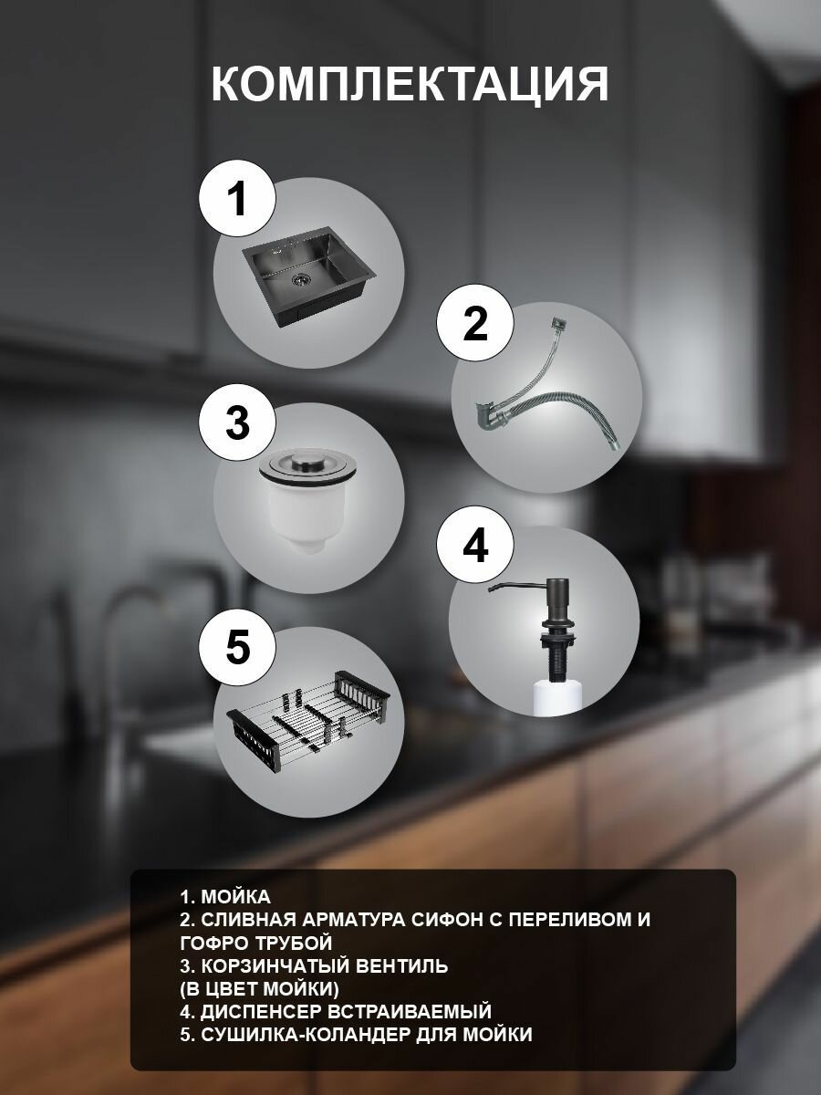 Мойка для кухни Henend 50x50 с дозатором и сушилкой 10 010 ₽ Подробнее